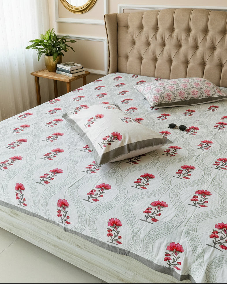 Dahlia - The Vibrant Bedsheet | Hand Block| Soft Fine Cotton